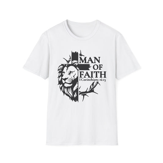 Man of Faith with Lion Design - Unisex Softstyle T-Shirt