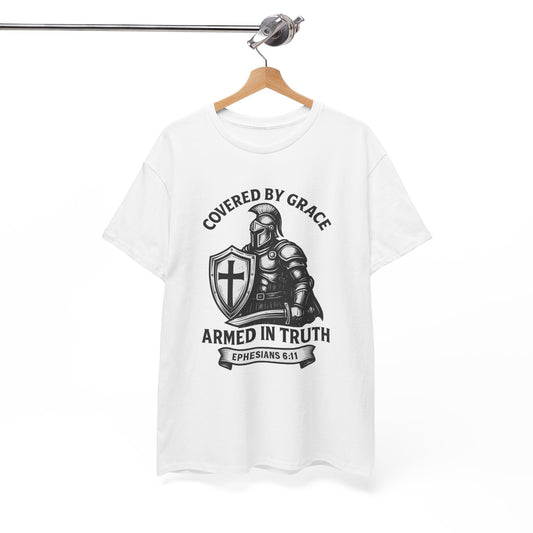 Covered by Grace – Christian Warrior Tee | Faith-Based Shirt