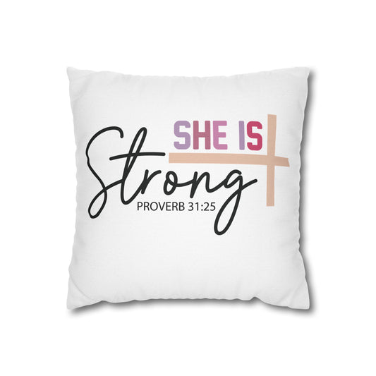 Inspirational Pillowcase - 'She Is Strong' Proverb 31:25 Decor