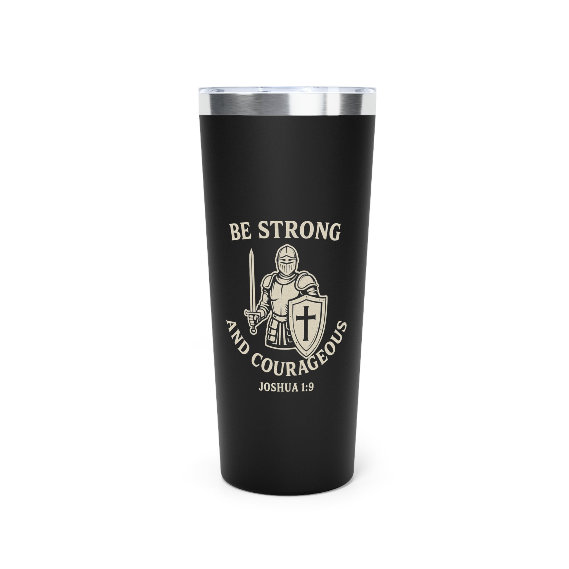 Carry strength and faith wherever you go with our 22oz Copper Vacuum Insulated Tumbler, featuring the powerful reminder from Joshua 1:9 – “Be strong and courageous.” Whether you're sipping coffee on your morning commute or enjoying a chilled drink at the gym, this tumbler keeps your beverages at the perfect temperature while uplifting your spirit.