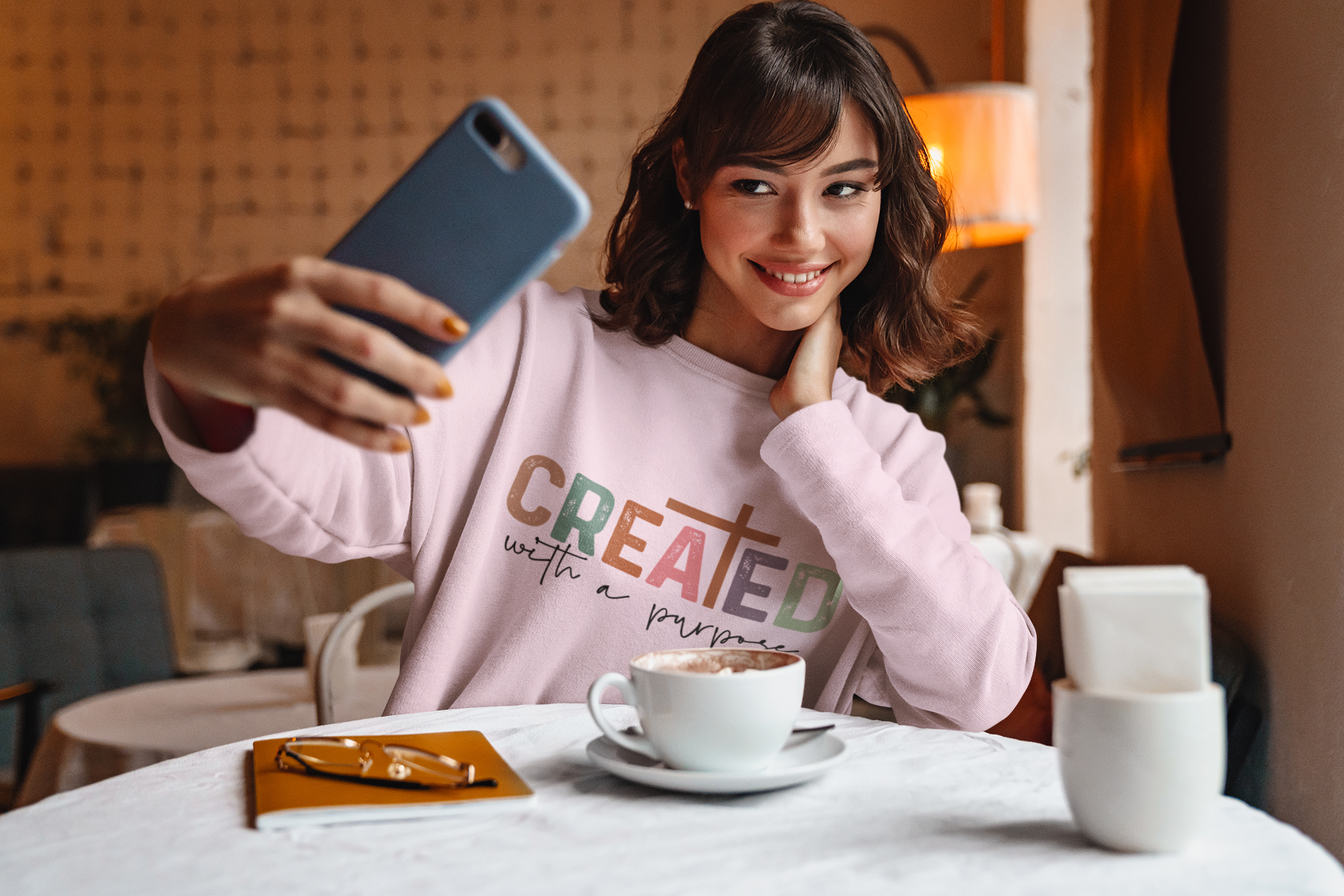 Wrap yourself in faith and comfort with the With a Purpose | Crewneck Sweatshirt. Designed for those who walk with purpose in Christ, this unisex heavy blend crewneck is more than just apparel—it’s a reminder to live intentionally in His grace.