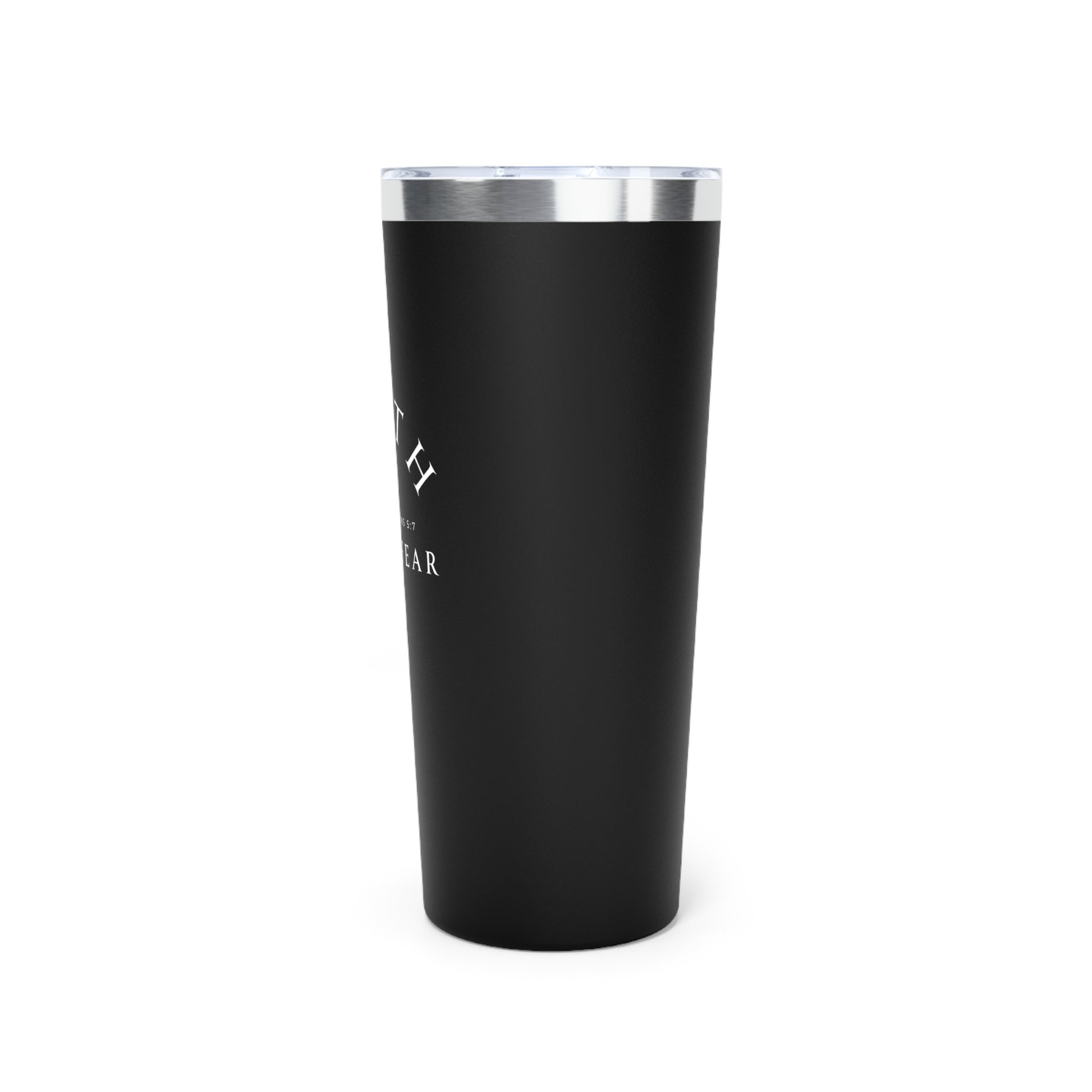 Stay hydrated in style on a daily basis with this personalized tumbler. With a 22oz capacity and copper vacuum insulation, our tumbler keeps your favorite beverages refreshingly cold for 24 hours, and soothingly hot for up to 6. Its stainless steel exterior is condensation-resistant while the powder coating adds extra style points.